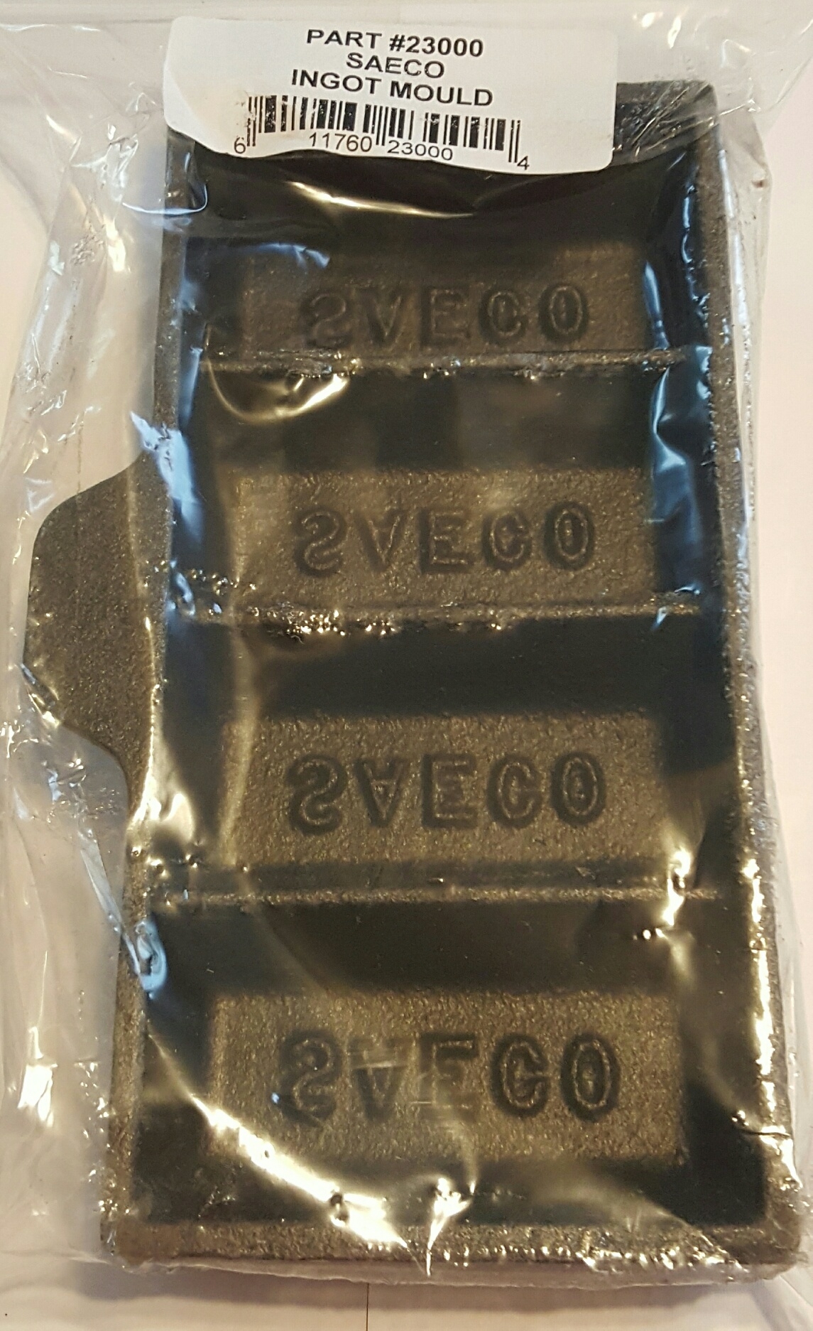 The SAECO cast iron ingot mould will produce four easy-to-handle ingots. A perfect way to store blended alloys.| Weight | 0.40 lbs |