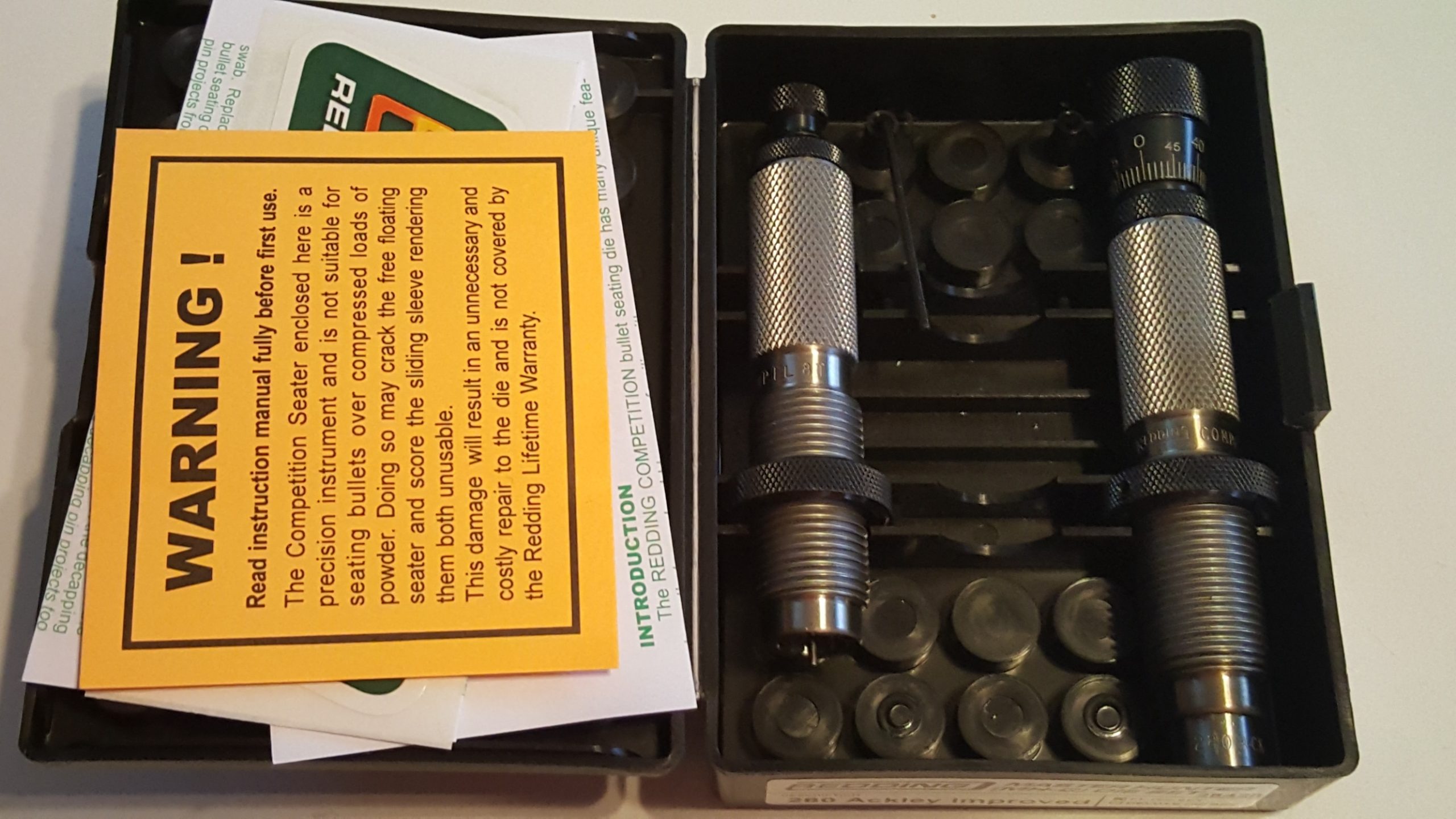 Master Hunter (MH-C) two (2) Die Set – combines a Full Length Sizing Die with a Carbide Size Button and the extraordinary Redding Competition Seating Die.