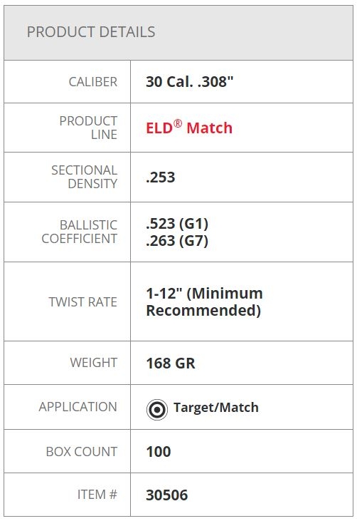 ELD® Match bullet BCs are measured with Doppler radar and corrected to standard atmospheric conditions.