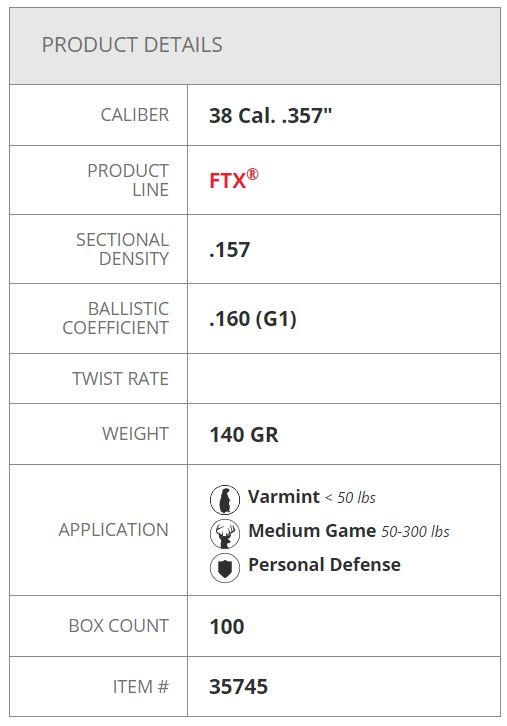 35745 Hornady .357″ 140 gr FTX 357 Magnum Box 100