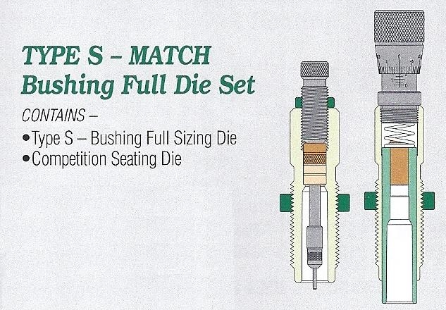 Set Contains: Type S – Match Bushing Full Length Sizing Die & Competition Seating Die