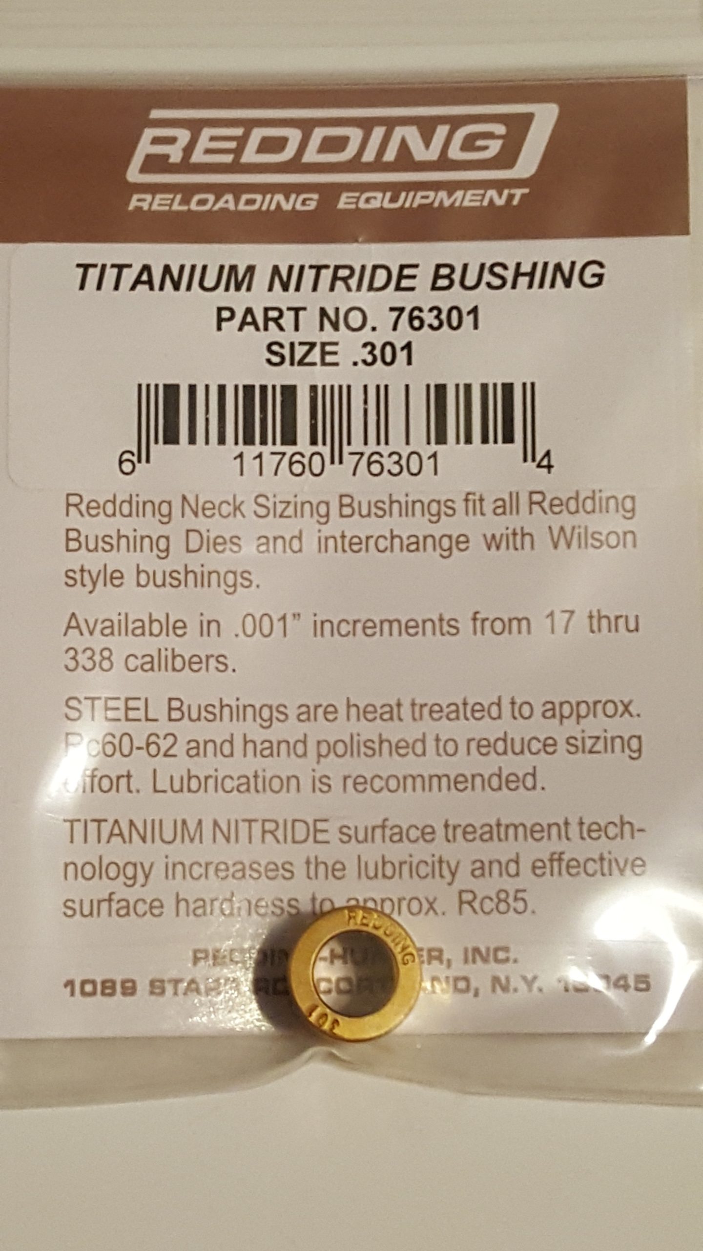 76301 Redding Titanium Nitride Neck Size Bushing