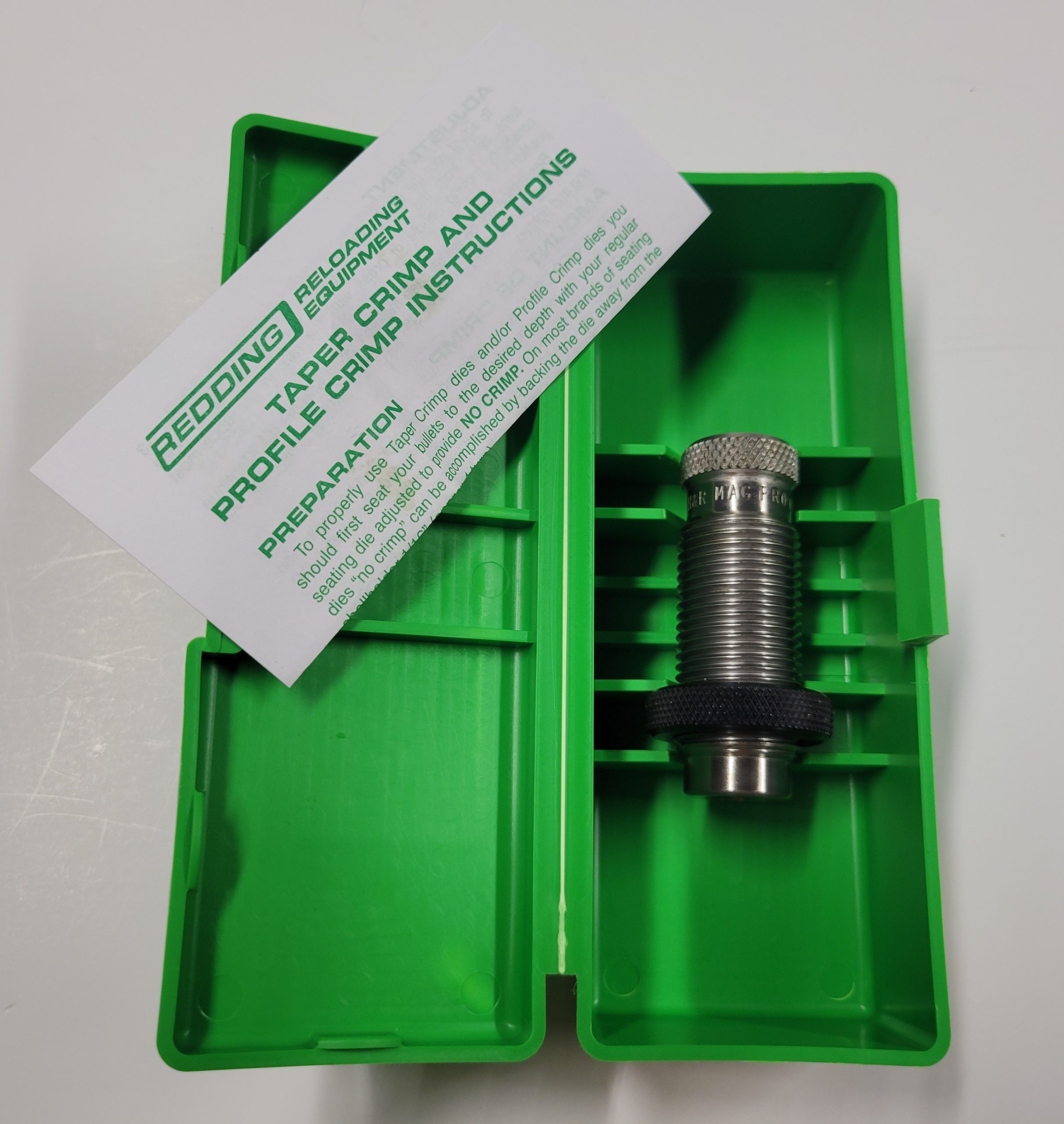 profile crimp dieThese handgun cartridge crimp dies were designed for those who want the best possible crimp. Profile crimp dies provide a tighter, more uniform roll type crimp, and requires the bullet to be seated to the correct depth in a previous  operation.