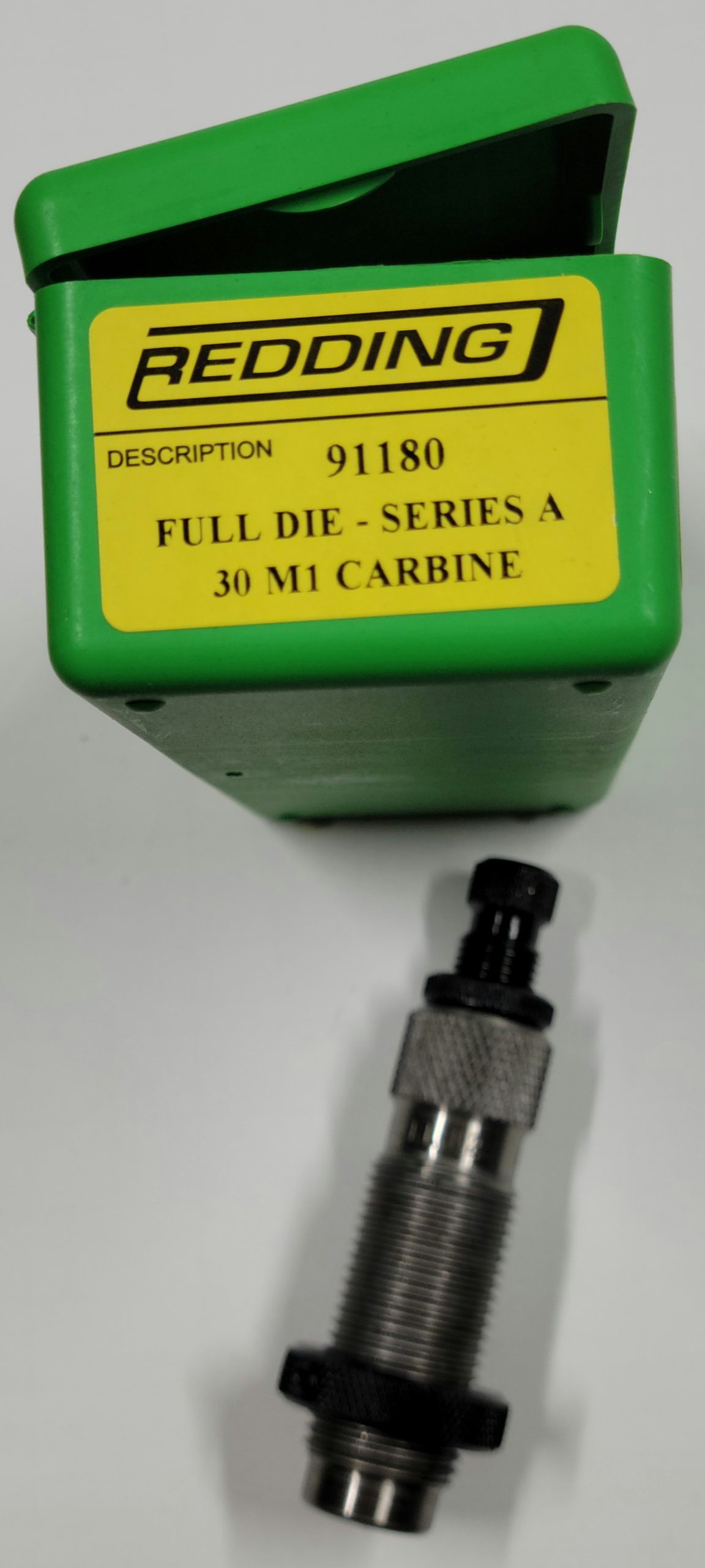 Full length steel sizing die for straight wall cases. The full length (FL) resizing die contains a decapping rod assembly.