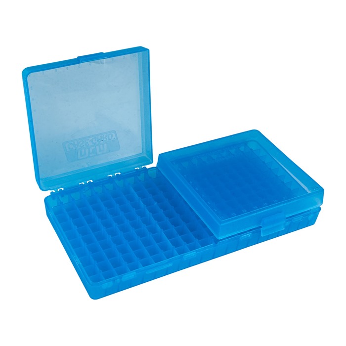 MTM originated the 100 round flip-top handgun ammo boxes over 30 years ago. The Case-Gard P-200’s are the perfect ammo carrier for the handgunner who wants to spend several hours at the range. Ideal for storing reloads. They have an easy to grip, scuff-resistant textured surface and are stackable. The Snap-Lok latch and full length mechanical hinge are guaranteed for 25 years. Calibers for each box are listed on the bottom of each box. Load label included.